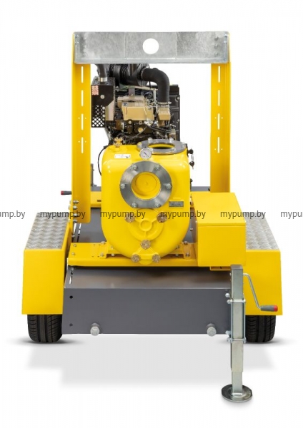 Самовсасывающая помпа с дизельным двигателем. Предназначена для работ по осушению объектов и отводу сточных вод с повышенным содержанием абразивных веществ. Производительностью по перекачке воды до 340 м3/ч, напор до 27.5 м.