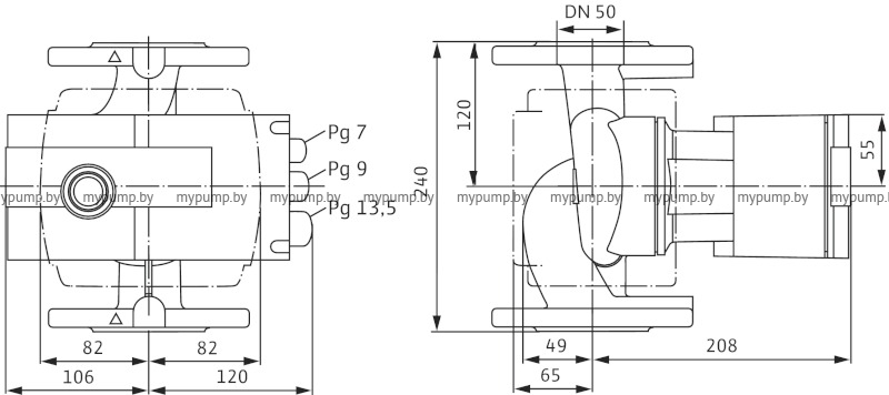Циркуляционный насос с мокрым ротором, с фланцевым соединением, электронно-коммутируемым мотором с автоматической регулировкой мощности.