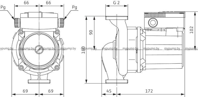 Циркуляционный насос с мокрым ротором, с резьбовым или фланцевым соединением.