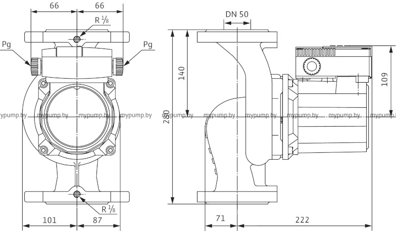 Циркуляционный насос с мокрым ротором, с резьбовым или фланцевым соединением.