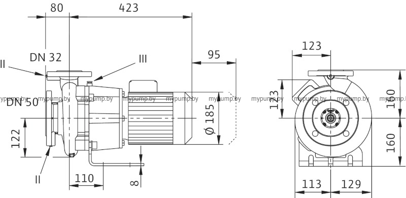 - Удобство пользования благодаря соответствию рабочих характеристик и основных размеров EN 733 (DIN для стандартных насосов)