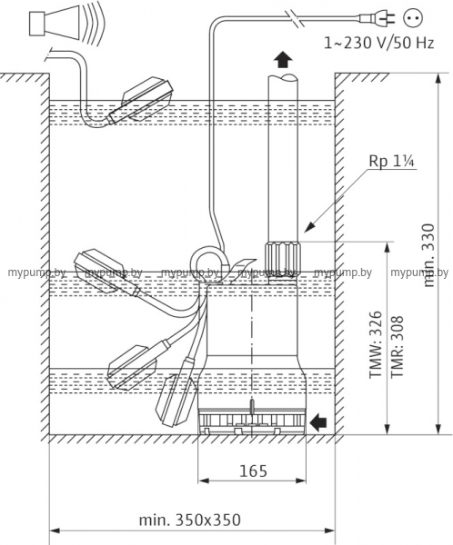 Водоохлаждаемый погружной насос для отвода чистой или слегка загрязненной воды из резервуаров, шахт или котлованов из спусков в подвалы и подвалов при их затоплении.