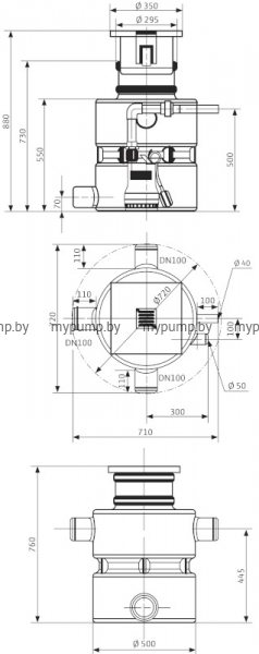 Напорная установка отвода грязной воды (подпольный монтаж). Автоматически включающаяся установка водоотведения со встроенным погружным насосом и обратным клапаном. Готова к монтажу в подпольном пространстве.