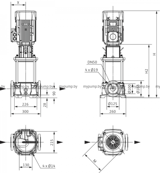 Нормальновсасывающий высокоэффективный многоступенчатый высоконапорный центробежный насос вертикального исполнения с линейными подключениями.