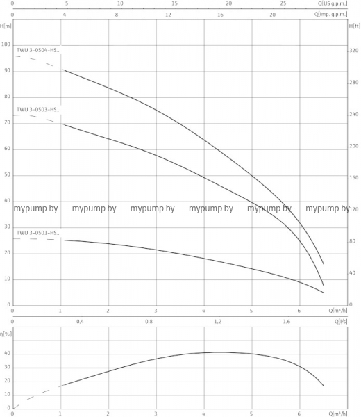 Трехдюймовый погружной насос Wilo Sub TWU 3-0501-HS-E-CP c возможностью вертикального или горизонтального монтажа.